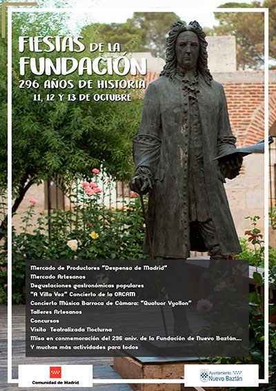 Las Fiestas de la Fundación en Nuevo Baztán tienen lugar el 12 y 13 de octubre y durante estos días de celebración tiene lugar en el centro de Nuevo Baztán un gran mercado de artesanía y toda clase de eventos como talleres infantiles, conciertos, animación callejera, mercado de productores, espectáculos teatrales, conferencias y degustación de productos gastronómicos locales.