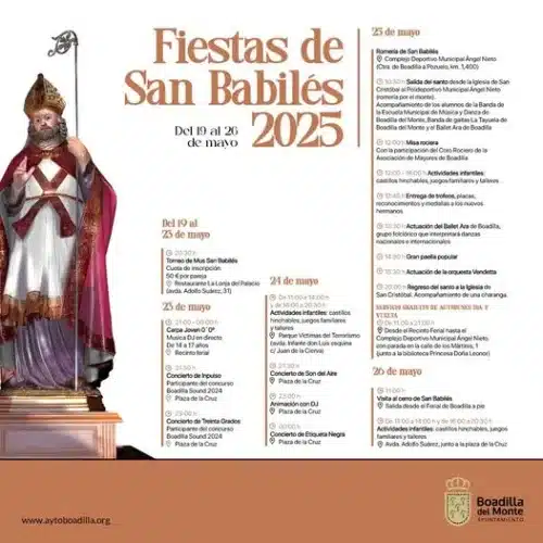 Las Fiestas de San Babilés 2025 de Boadilla del Monte se celebrarán desde el lunes 19 al lunes 26 de mayo.