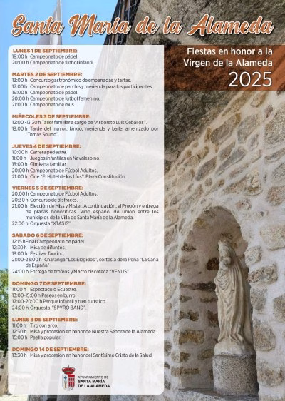 Las Fiestas de Santa María de la Alameda 2025 en honor a Santa María de la Alameda se celebrarán desde el jueves 4 al lunes 8 de septiembre.