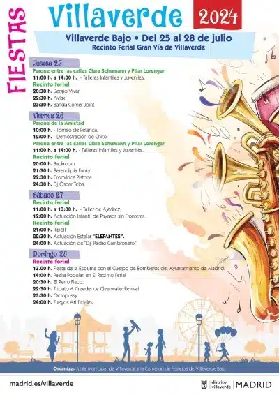 Las Fiestas de Villaverde bajo 2024 se celebrarán desde el jueves 25 al domingo 28 de julio.
