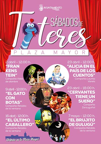 Desde el 2 de abril hasta el 7 de mayo, cada sábado, exceptuando el 30 de abril, podremos disfrutar de espectáculos de títeres en la Plaza Mayor de Torrejón de Ardoz.