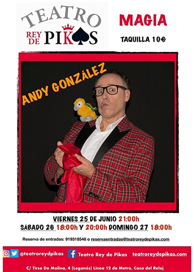 Andy tiene varios premios Nacionales e Internacionales y lleva en las artes escénicas desde el año 1982, actuando dentro y fuera de nuestras fronteras. Ha actuado, tanto para la familia real monegasca, como para su propia familia. Esta experiencia le ha dado la capacidad de adaptarse a todo tipo de público, donde entran siendo espectadores y salen siendo amigos.