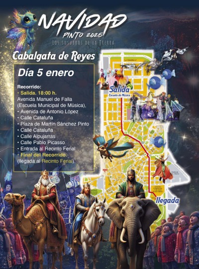 La Cabalgata de Pinto 2026 saldrá el día 5 de enero a las 18:00 h desde la Avenida Manuel de Falla y finalizará en el Recinto Ferial.