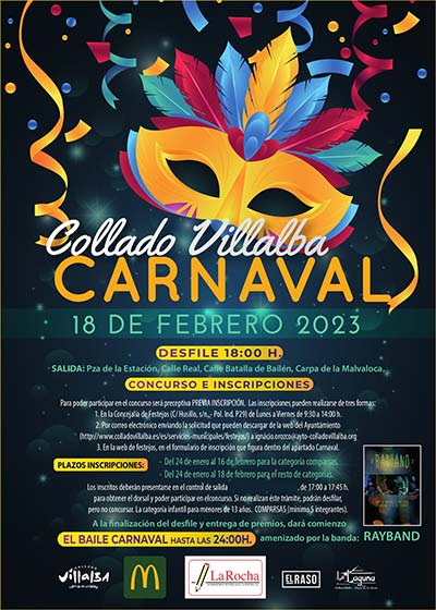 El Carnaval de Collado Villalba 2023 se celebrará el sábado 18 de febrero con el desfile, concurso y baile de carnaval.