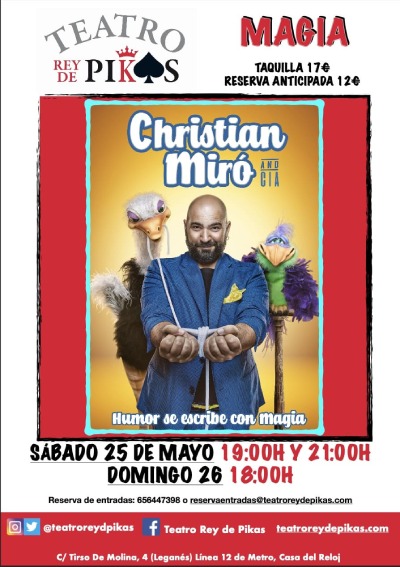 “CHRISTIAN MIRÓ AND CIA” . En este espectáculo, Christian va alternando Magia y Ventriloquía de una manera magistral para conseguir un único objetivo: Las risas del público.