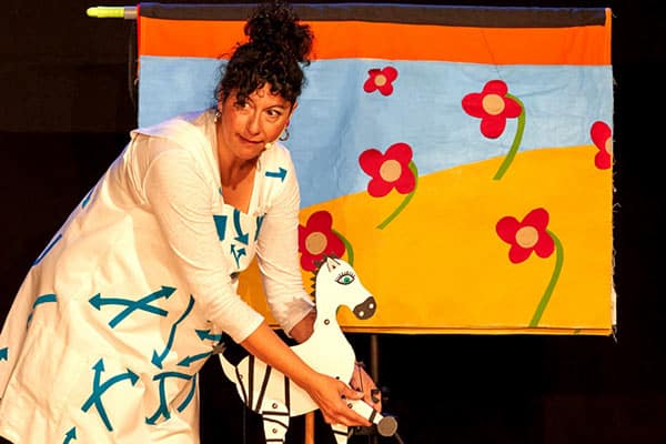 Aunque su trayectoria no se haya enfocado solo al trabajo con objetos, estos forman parte de su universo que, junto con las palabras, sus maneras de payasa, y su comunicación directa y juguetona, conforman su camino como creadora. CON LA CABEZA EN LAS NUBES es un espectáculo que quiere hacer que el público familiar haga volar su imaginación y sus sonrisas. En su maleta trae algunas historias, unas cuantas marionetas y una veintena de “trastos” que han formado parte de su andadura. 30 años trasteando dan para mucho…