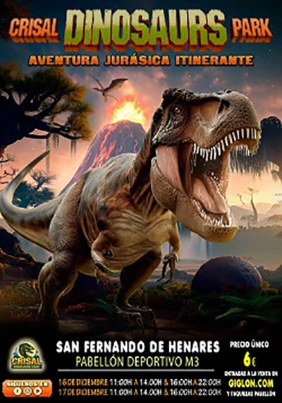 CRISAL DINOSAURS, nos acerca un tema atemporal que gusta por igual a mayores y pequeños, incluyendo efectos luminosos y sonidos de dinosaurios llenos de realismo. Las piezas se exhiben en escenarios decorados en un entorno selvático y están realizadas a escala 1:1. Los paneles descriptivos que acompañan la exposición nos ayudan a realizar un viaje del que nos separan 250 millones de años, y además se llevan a cabo visitas guiadas sobre el mundo de los dinosaurios.