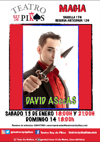 El increíble mago David ASecAS, estará con nosotros en el Teatro Rey de Pikas los días 13 y 14 de enero. Show de magia familiar en Madrid.