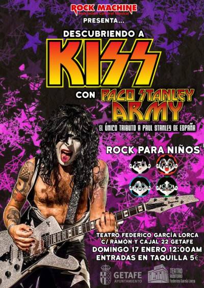 Una oportunidad única para disfrutar en directo de las mejores canciones de KISS en compañía de los pequeños de la casa, de la mano del auténtico PACO STANLEY ARMY en directo. Vivir los primeros conciertos con tus hijos, sobrinos o nietos al tiempo que descubren las mejores bandas de la historia del rock, será una experiencia que nunca olvidarán.