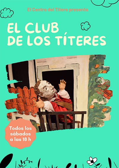 El Club de los títeres del Centro del Títere propone actividades variadas para niños/as de 4 a 12 años todos los sábados a las 18 h: juegos, talleres, espectáculos… Ser socio/a del Club de los títeres permite disfrutar de distintas actividades cada mes, descuentos especiales y reserva prioritaria en las actividades.