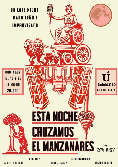 Esta noche cruzamos el Manzanares es un espectáculo de comedia que, como si de un Late Night televisivo se tratase, da vida a distintas secciones creadas de manera improvisada a partir de las aportaciones del público.
