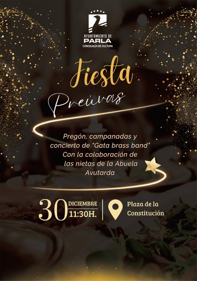 El próximo 30 de diciembre, Parla despedirá el año por adelantado con la celebración de las Preuvas, una cita festiva que tendrá lugar a las 11:30 horas en la Plaza de la Constitución y que contará con pregón, campanadas simbólicas y un concierto en directo de “Gata Brass Band”.