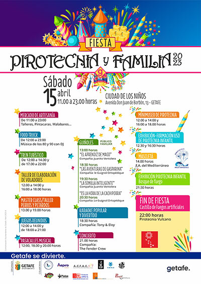 El sábado 15 de Abril, de 11:00 a 23:00 horas, se llevará a cabo la Fiesta Pirotecnia y Familia en la Ciudad de los niños (Avenida Juan de Borbón, 13- Getafe).