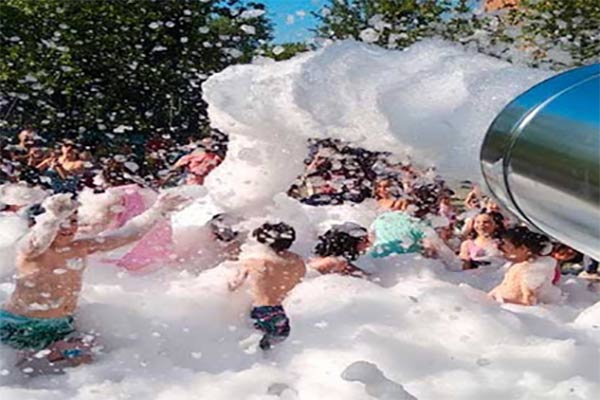 Tobogán doble de 10 metros de altura, deslizador, futbolín gigante acuático y fiesta de la espuma.