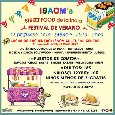 Únase a nosotros para nuestra Celebración Anual de Verano: el Festival de Verano de Indian Street Food de ISAOM que se llevará a cabo el sábado 22 de junio de 2019.