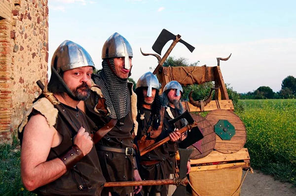 Unos bárbaros del norte acarrean una gran catapulta medieval. Son una peculiar tropa de soldados que chulean con una actitud tan agresiva y salvaje que les convierte en unos personajes esperpénticos y muy cómicos.