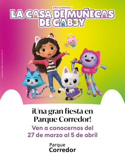 Del 27 de marzo al 5 de abril llega a Parque Corredor un plan familiar lleno de color, creatividad y diversión inspirado en La Casa de Muñecas de Gabby. Una experiencia inmersiva para que los más pequeños se adentren en el universo más gatuno de la tele.