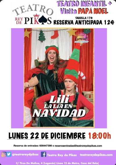 Lili la Lia en Navidad y tras el espectáculo la visita de Papá Noel. Espectáculo infantil de Navidad el lunes 22 de diciembre a las 18:00h. A partir de 3 años.