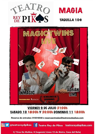 Magictwins Live” es un espectáculo de magia y humor familiar dirigido para todos los públicos. La duración del espectáculo es de 60 minutos, incorpora efectos de magia de calidad visual y novedosos en los que los magos harán participar a los propios espectadores.