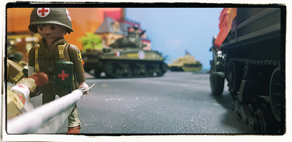 El Mercado del Juguete de Madrid recrea “La 9ª libera París” con un diorama de clicks de Playmobil que representa la hazaña de unos españoles que grabaron su heroísmo en la victoria.