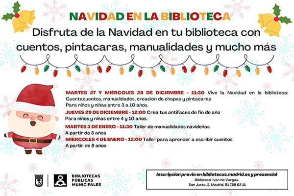 11:30 h. Vive la Navidad en la biblioteca: Cuentacuentos, manualidades, creación de chapas y pintacaras