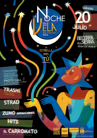 La noche en Vela 2024 en Becerril de la Sierra se celebra el sábado 20 de julio a partir de las 20:00 h.