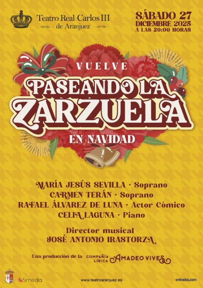 Después del éxito de la pasada temporada, vuelve la Compañía Lírica Amadeo Vives al Teatro Real Carlos III de Aranjuez con una nueva edición de PASEANDO LA ZARZUELA EN NAVIDAD.