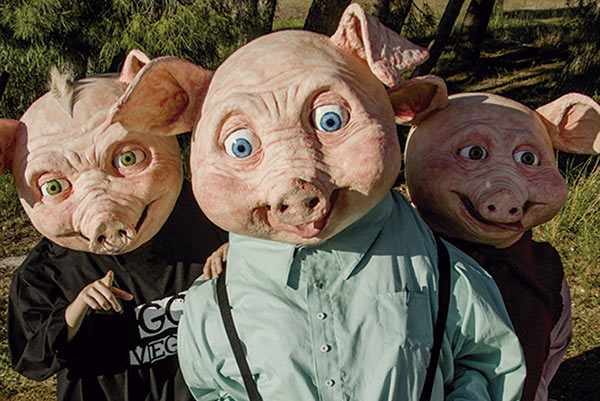 Los tres cerditos del famoso cuento popular se han hecho mayores y ahora se les ve por las calles de la ciudad buscando una nueva casa.
