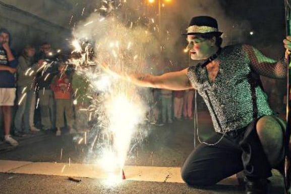 Un pasacalles cañero, donde la música, la luz y el color de la pirotecnia llenan la calle. Los personajes sacados de la estética del cabaret Berlinés se mezclan con la sensualidad del Burlesque, y provocan un efecto explosivo, mezclando la tradición del “Correfoc” mediterráneo con una nueva estética canalla.