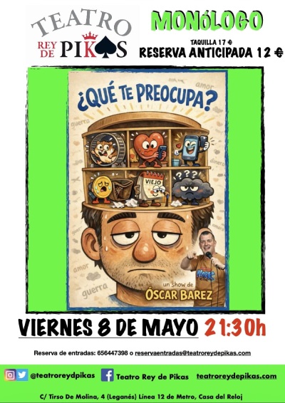 ¿Qué te preocupa? es un show de comedia e improvisación donde el público no solo viene a reír… viene a participar. Aquí, las preocupaciones del día a día se convierten en el motor del espectáculo: desde las pensiones al jubilarse hasta la luz del portal, todo vale para transformarlo en humor.