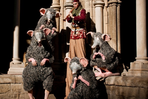 ‘Ratas’ es un espectáculo de calle basado en el cuento tradicional ‘El flautista de Hamelin’, de los Hermanos Grimm. Una adaptación gigante y muy gamberra del clásico, en la que las ratas juegan con todo lo que encuentran a su alcance mientras siguen los pasos del flautista, que las guía desde las alturas.