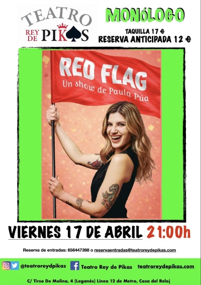 Paula Púa presenta Red Flag, un espectáculo de stand-up con vídeos y música para hablar con humor y honestidad sobre la ansiedad, el exceso de ego o la presión de grupo al salir de fiesta (no, tíos, de verdad que me sobra ese chupito de Jager).
