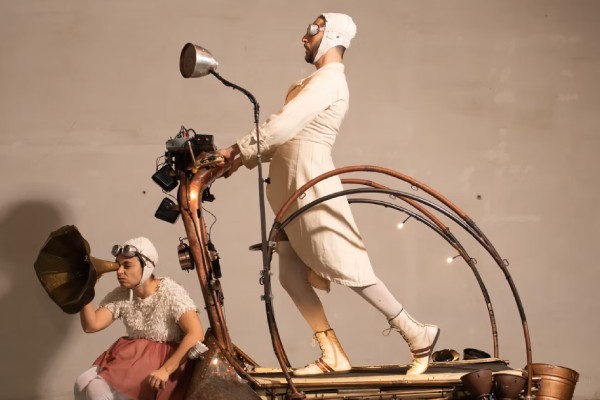 ¡Vienen de lejos, viajan quién sabe cuánto tiempo…! Una pareja de payasos y su bizarro vehículo de cobre y metal recorrerán las calles del Festival y la plaza es el lugar perfecto para hacer una pausa.
